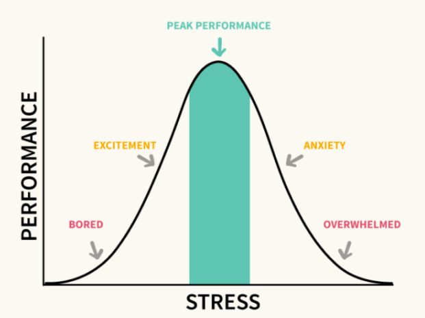 He goes on to explain that “a little stress at work is a good sign. It means you’re engaged, excited, and passionate about what you’re doing.” Additionally, “when we’re not stressed enough, we become bored, and that’s never good for our motivation or productivity. When we’re too stressed, we become overwhelmed and can’t handle the workload we have.”